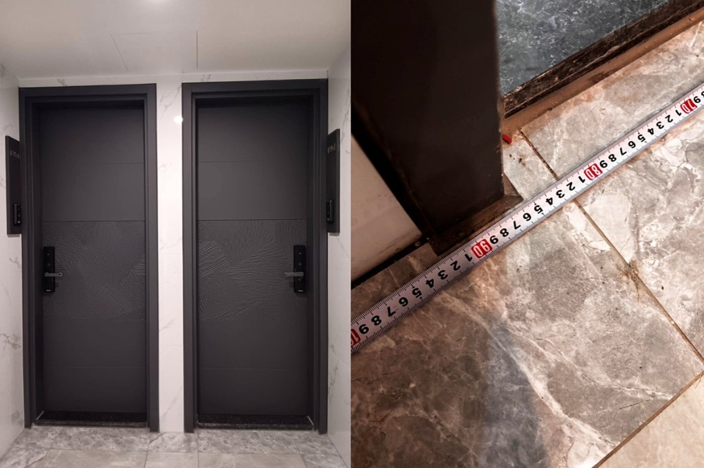 買預售屋交屋時發現,玄關大門竟然比廁所門還小!一位網友在「靠北建商2.0」投稿指出,「玄關大門不符合預售屋交屋及廣告DM寛度,建商只願意補償搬家家具吊車費用。」並上傳開門後實際可走的寬度約70公分的照片。