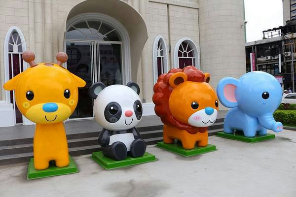 你們看!!!城堡前有長頸鹿,熊貓,獅子,還有大象,是不是萌翻了